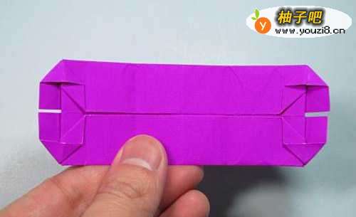19第19步、将两侧外面部分沿着盒边向内翻折180度,如图所示。