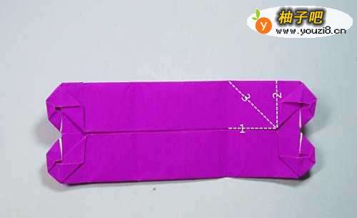 17第17步、将上图中内侧的边1沿着对角虚线3折向叠边2,边1与叠边2重合。