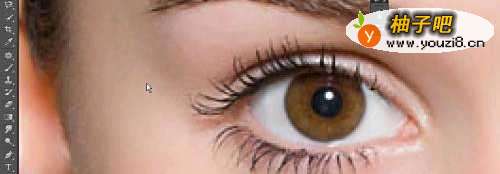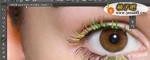 6在人物的眼睫毛上开始涂抹,涂抹完之后用放大镜工具对图片进行缩小,就这样彩色眼睫毛的半成品就画好了。