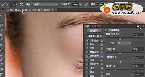 3在画笔预设里面选择颜色动态,设置画笔颜色数据,因为你要给人物添加的是彩色的眼睫毛
