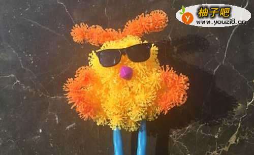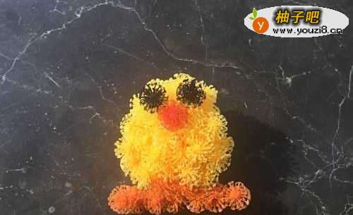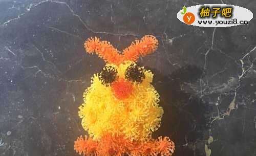 用黏黏球蓬蓬球手工DIY怪物小鸡