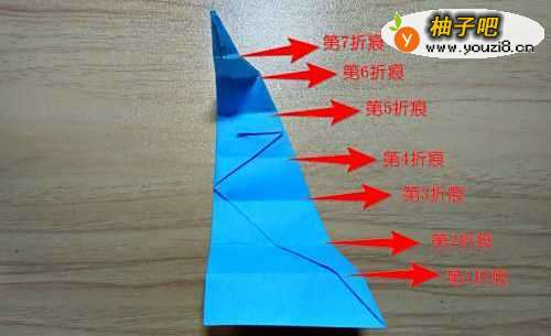 16再把上边、下边分别两次对折到折痕后摊开,共有7条折痕,从下往上分别为第1折痕到第7折痕。