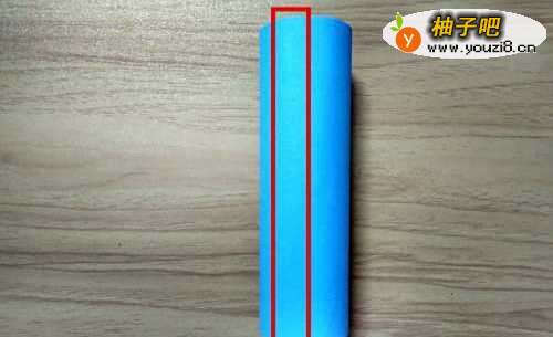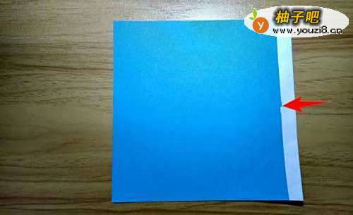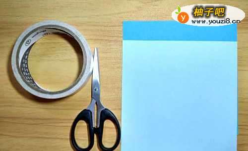 8拿起蓝色彩纸,在右侧贴上双面胶。