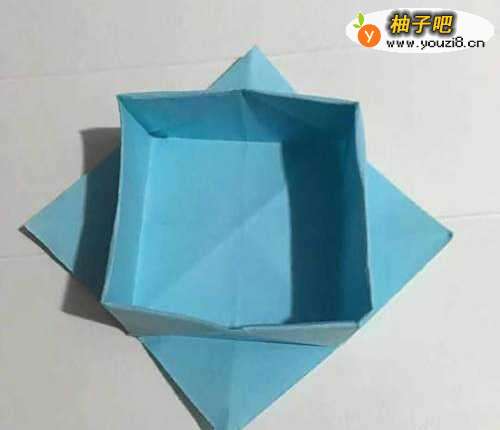 6第六步 四个角都向里折叠完之后 再把捏折的两边都向外折倒 然后慢慢取开 再把周围四个三角放下 最后再捏折整理一下 一只精致漂亮的烟灰缸就折叠完成了