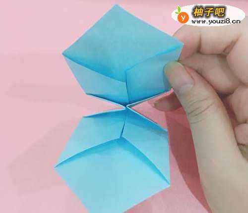 5按照步骤4的过程,中间会出现漏斗的形状,将其捏成正方形,过程如图3所示。