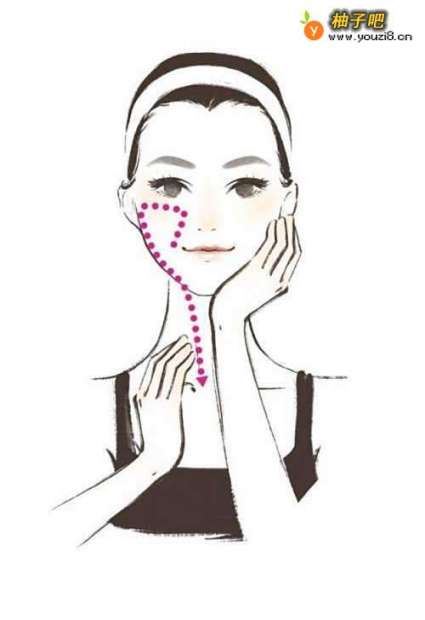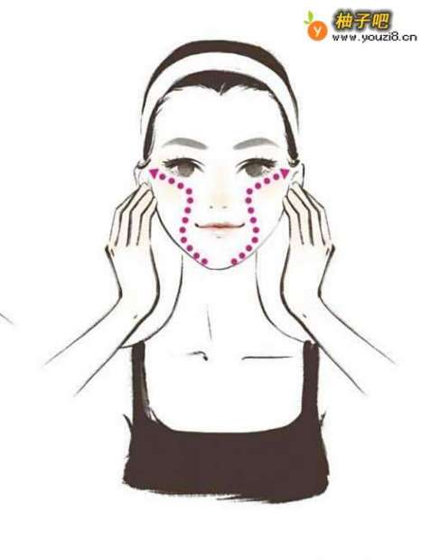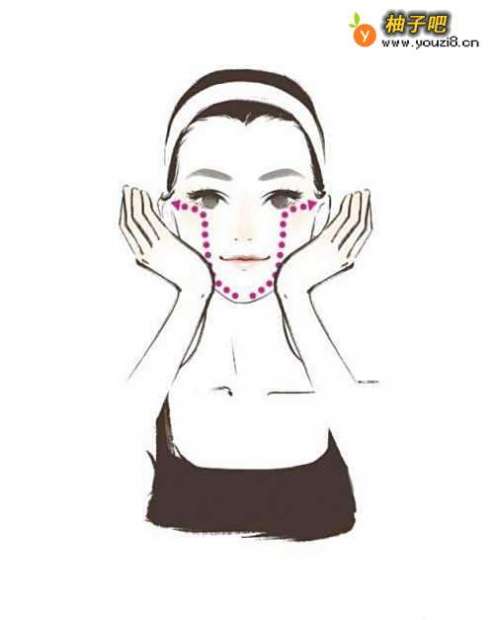 6从下巴两侧往上推,推到脸颊,再往脸颊两侧延伸,重复3 次。