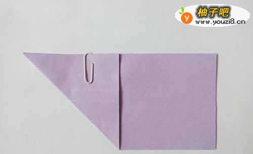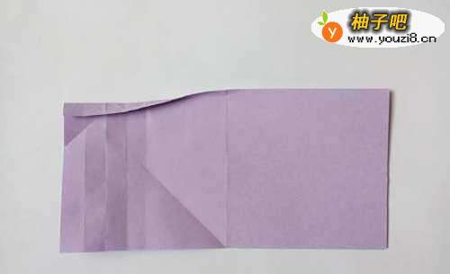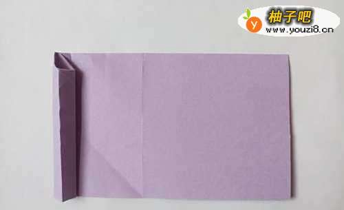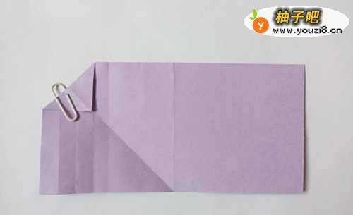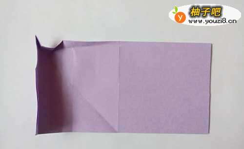 7展开,将上面的角折叠至第三条折痕与斜折痕的交叉点的位置。