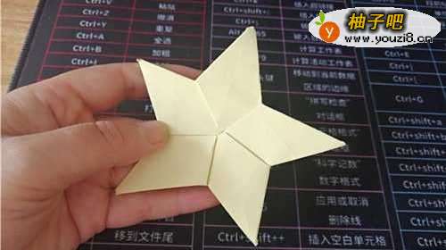 今天我们来折一个五角星,是有五张一样大的正方形彩纸折好后,组合而成。小伙伴们也可选用颜色艳丽的彩纸来折,效果会更好。