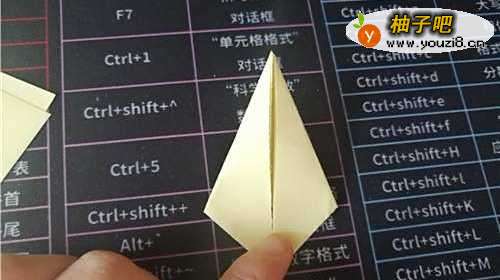 4我们把左右两侧的边向着中间的折痕翻折,如图所示。