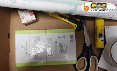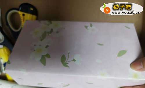 5选择喜欢的彩纸,配合双面胶,包装纸盒,如图
