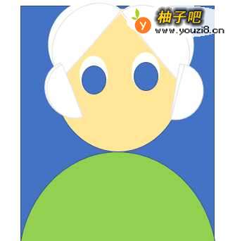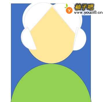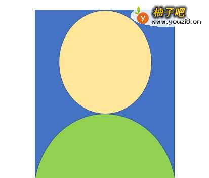 2剪一个浅橙色的椭圆,作为整个作品的头部,粘贴在半圆的上方,两个圆刚好相切,不需要重叠也不能留出缝隙。