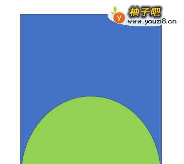准备一个稍微大点的正方形彩纸,作为我们整个设计品的底板,用剪刀剪一个半圆,取不同于底板颜色的彩纸,将半圆粘贴在底板最下方。对齐底板下边缘。