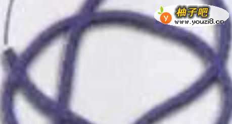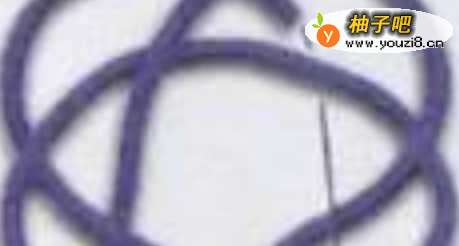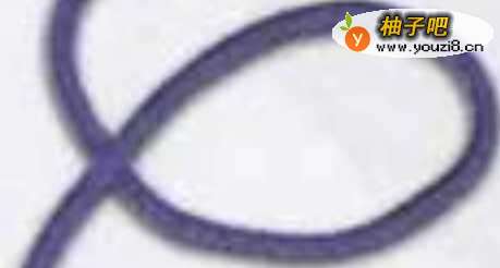 2做出第二个环状后,再顺着箭头把绳端穿过去