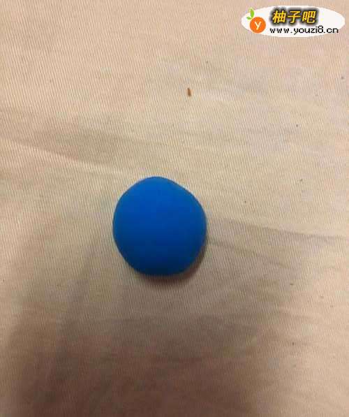 拿出蓝色的彩泥揉成圆形,在拿出蓝色的彩泥揉成8个小长条。一连接。