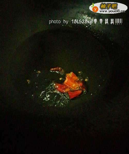 3油锅烧热后,用干辣椒段、花椒炝锅;