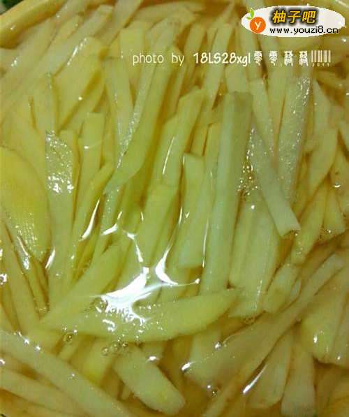 土豆去皮洗净后,切成粗一点的土豆条,用清水浸泡片刻后,控干水分;