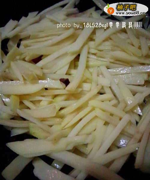 4将土豆条放入锅里翻炒;