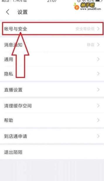 5点击“设置”进入到设置页面,在设置页面上我们可以找到“账号与安全”