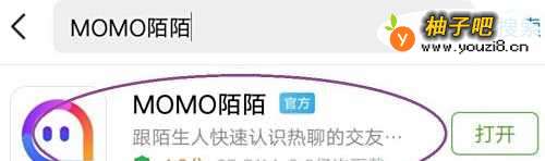 打开手机的应用商城,在搜索栏中键入“陌陌”,搜索下载陌陌手机。下载完毕后会自动安装到我们的手机上。
