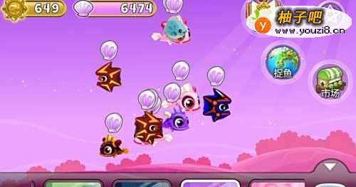 5小鱼吃饱后会产贝壳,或者卖掉鱼得到贝壳,积累一定的数量后可以去市场买新的鱼。
