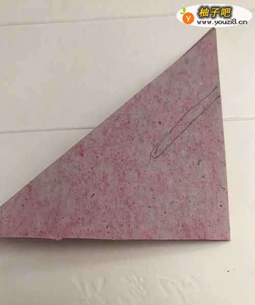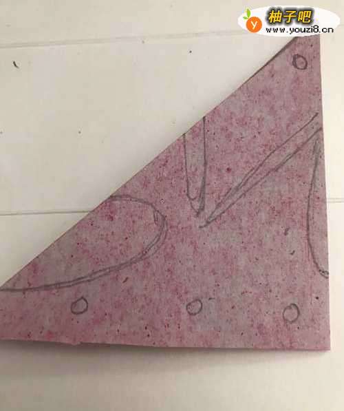 3第三步 六角对折好之后 再把它调整一下 九十度的角放在右下角 然后拿起绘图铅笔先画上一个简单的小图案