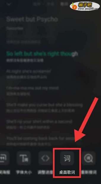2这时可以看到播放页面上端有歌词两个字,我们继续点击这两个字。进入歌词的相应界面。后会发现界面的左下角有一个“词”字的图标,继续点击。