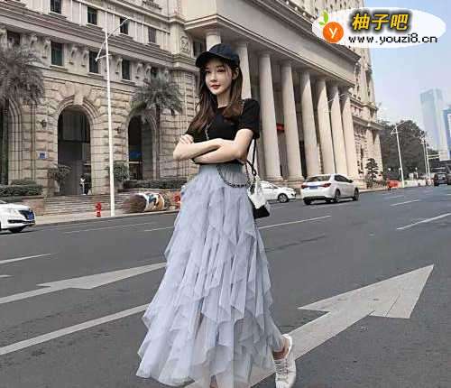 搭配一:黑色纱裙+白色中袖T恤黑色和白色单品搭配在一起是很大方的,这款白色中袖T恤是很洋气的,搭配一条黑色纱裙,穿出来特别显气质。