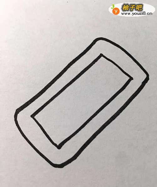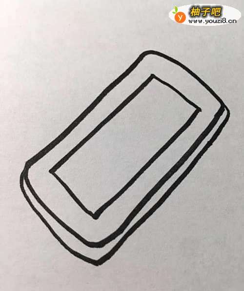 3在大长方形右侧及下侧再画一圈,作为手机的侧边。