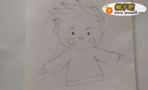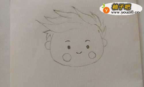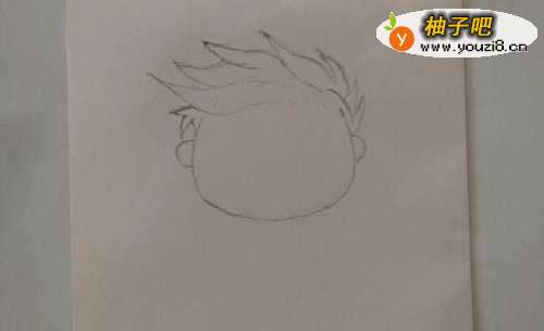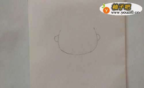 首先我们要画出脸的轮廓,然后画耳朵,卡通人物头要画的大一点。
