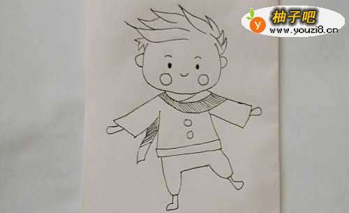 6最后画围巾,风吹动围巾,围巾要有起伏,所以要画曲线。