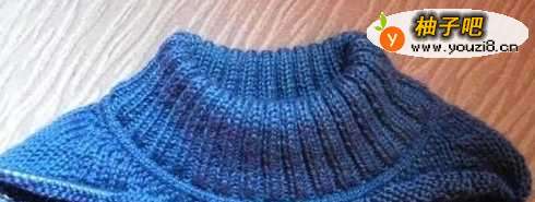 用13号针起针120针,织两行平针一行上针三行平针,然后对折并针。这样就形成了机器边。并针后织双螺纹40行,把衣领向内对折,在机器边的上方,用钩针合并套收。