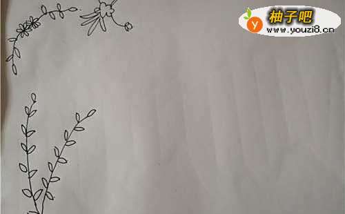2首先我们先在纸张的左上角画上条弧线并在上面画上些花叶进行点缀。