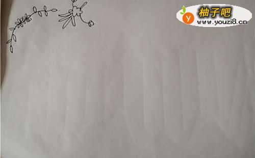 3画好后我们在从刚画好的图案下面在画上两支伸出来的枝叶,根部是连在一起的。