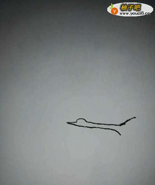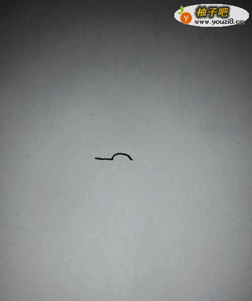 我们先用钢笔在白纸上画出一条短短的直线,接着来画出它脑袋上的弧线注意不要画的太大了。