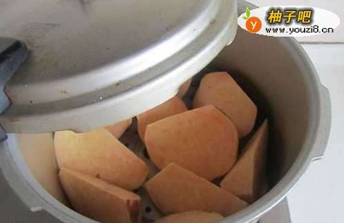红薯去皮,洗净,切块,蒸熟(以筷子能轻易穿透为准)