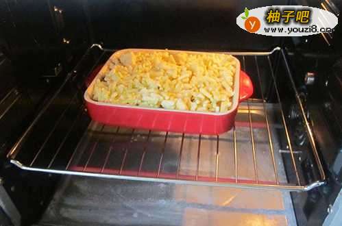 4将拌好的葡萄干红薯泥放入烤盘或耐高温的容器中