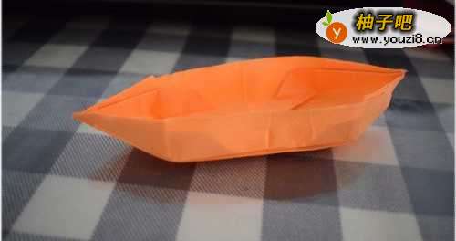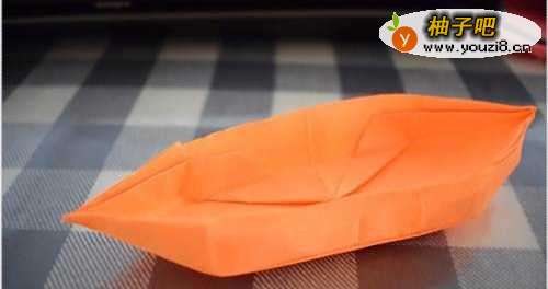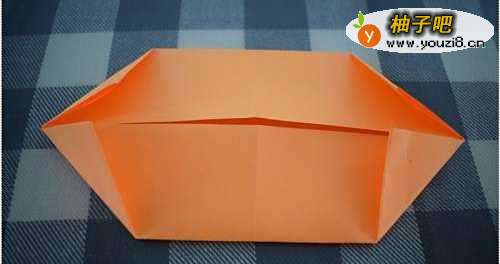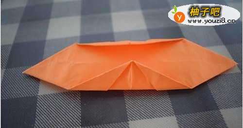 7叠纸船的方法—用手抓着纸船,用力把纸船反过来,把步骤6的内容包到里面去,做为船底。