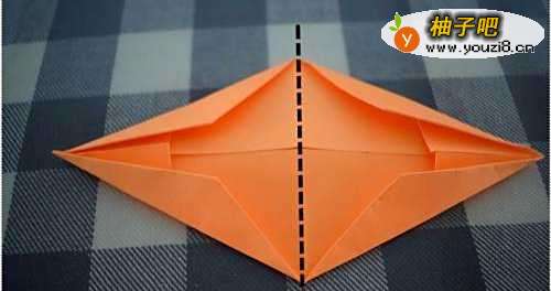4小船怎么折?把四个角折下来,折成下图中的样子。
