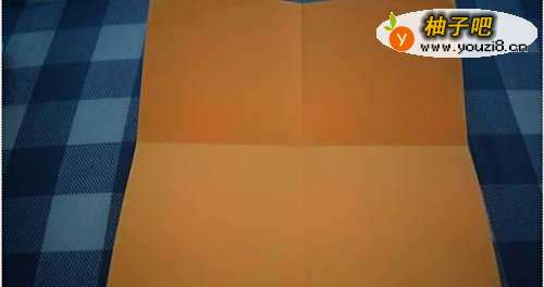 2将彩纸对齐折叠,然后打开,从另外一个方向对齐,再折叠。