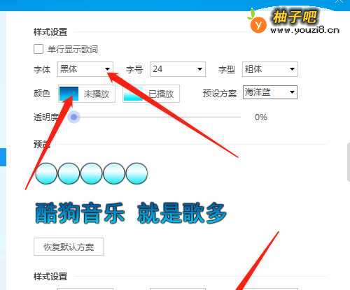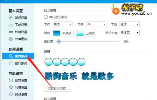 电脑版酷狗音乐更改桌面歌词颜色和字体的方法