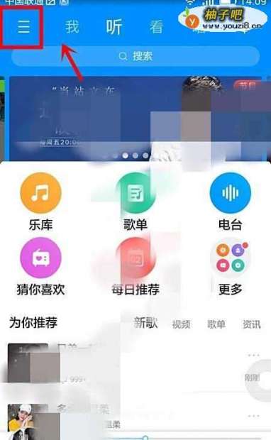 2在打开的首页中选择左上角的三横菜单图标;
