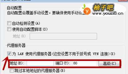 8之后我们勾选为LAN使用代理服务器,在地址中输入服务器地址,并输入端口,点击确定即可设置成功。我们即可用代理服务器上网,如图所示。