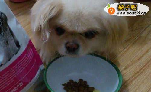 6这个时候呢,我们可以在盆里适当的添加一些犬粮。直到狗狗吃饱为止。