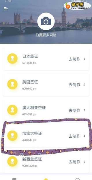 加拿大签证照片尺寸要求: • 相片外沿大小必须为35毫米 X 45毫米 (1.37寸 X 1.77寸)。 • 必须在照片中体现整个头部的正面,脸部在照片中间,且要包括肩部上端。 • 头部的大小,即从下巴到头顶*的长度,必须在 31毫米 (1.22寸) 至36毫米 (1.41寸) 之间。 • 头顶:头部的最上端,或(如果受头发或头饰的影响),可见到的头部/脑壳最上端。