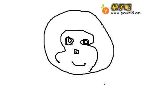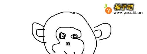 2接下来我们给猴子画上眼睛鼻子嘴巴,这样一只小猴猴脑袋就出来了 。