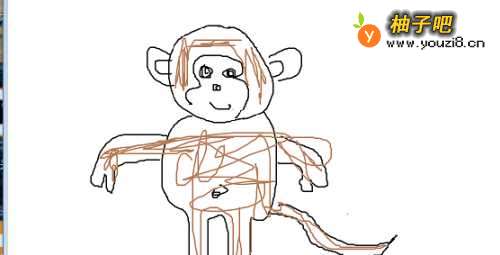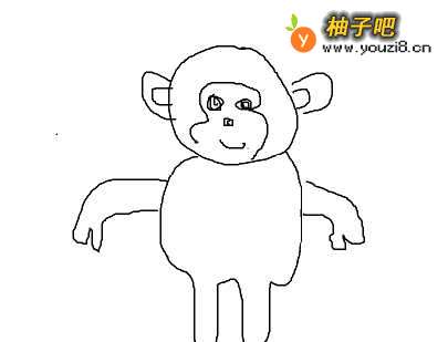 4之后我们画上猴子的身体和腿,猴子与人类相似,所以我们可以一笔勾勒出来。