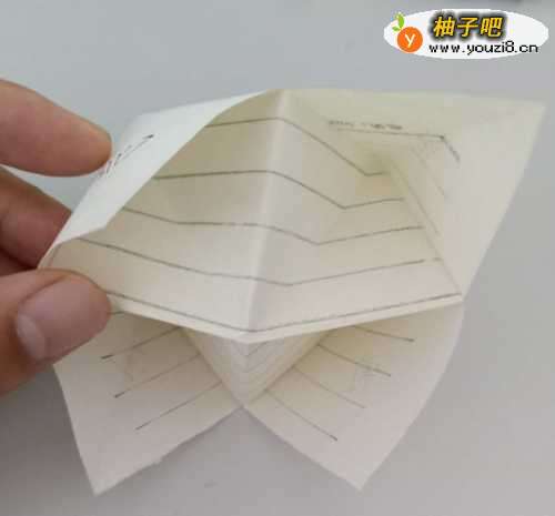 6之后打开4个角向中间撑。最后变成下图所示。东南西北折纸已经折叠好了。