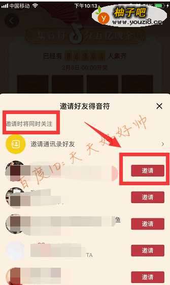 3点击“邀请”,要注意邀请的同时会关注对方。