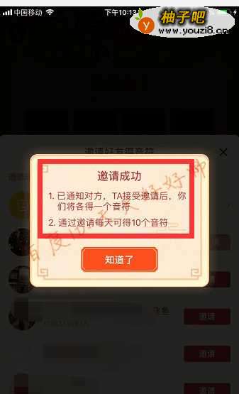 4显示邀请成功,对方接受的话,你和对方就都有一个音符了。