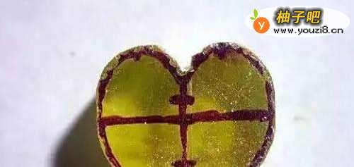 11自己在硬纸片上按照上面说过的比例画一个大小差不多的心形,然后再这个不规则形状的琥珀上来回的比对,找到最合适的位置,用记号笔苗边标记下来,再按照上面的步骤一步一步来,直到完成。